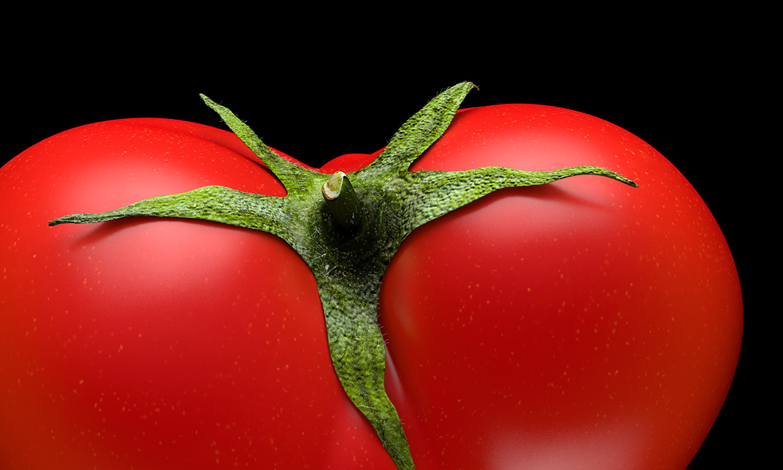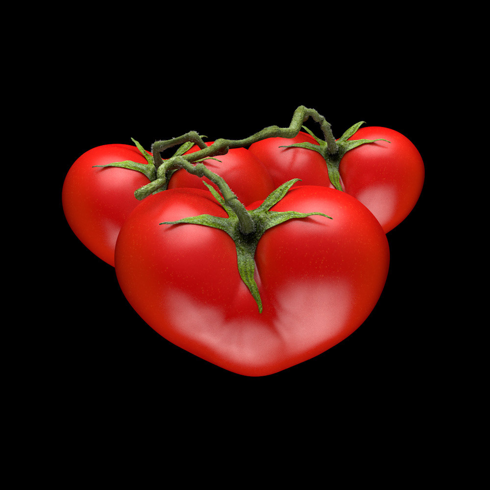 3D Tomato in the shape of a heart. Modelling and texturing a blend of photography and textures.